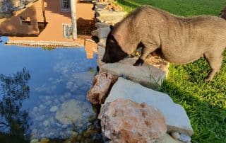 Como ela é extremamente inteligente rapidamente arranjou forma de conseguir subir aos comedouros pelo que tivemos de arranjar inumeros truques para evitar que ela o conseguisse. Todos os dias são uma aventura com um porco!